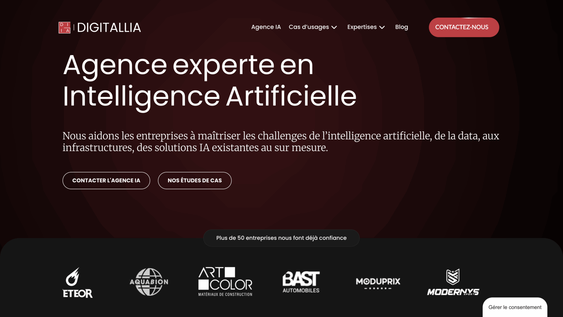 Digitallia est une agence française spécialisée en intelligence artificielle (IA), data et solutions numériques. Elle accompagne les entreprises de toute taille dans la conception, le développement et l’intégration de solutions IA sur mesure ou à partir de briques existantes. Elle se positionne comme un prestataire capable de couvrir diagnostic, data, développement, intégration IA.